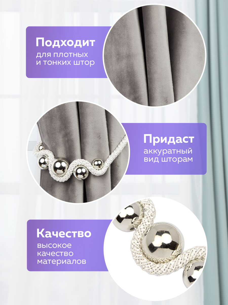 Подхваты для штор "Mirtex" - 85 см, молочный с серебристыми бусинами интересное: