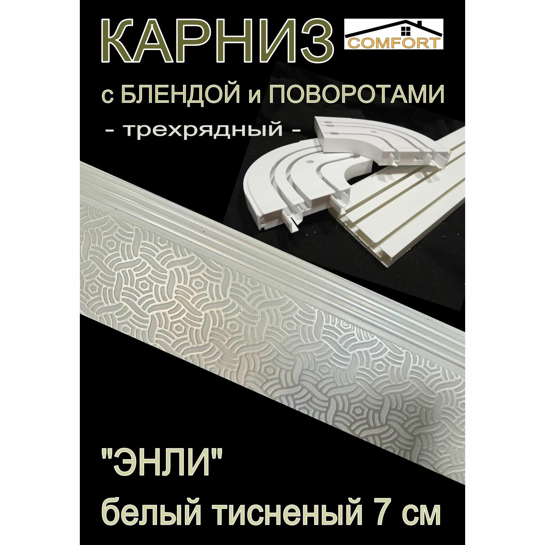 Ниже Вы можете прочитать отзывы на Багетный карниз ПВХ с поворотами, 3-х рядный, 250 см, "Энли" белый 7 см, ознакомится с подробными характеристиками, посмотреть интересные обзоры и фотографии на Багетный карниз ПВХ с поворотами, 3-х рядный, 250 см, "Энли" белый 7 см.