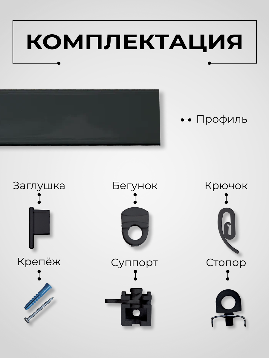 Карниз для штор на окно профильный однорядный, черный, 200 см.