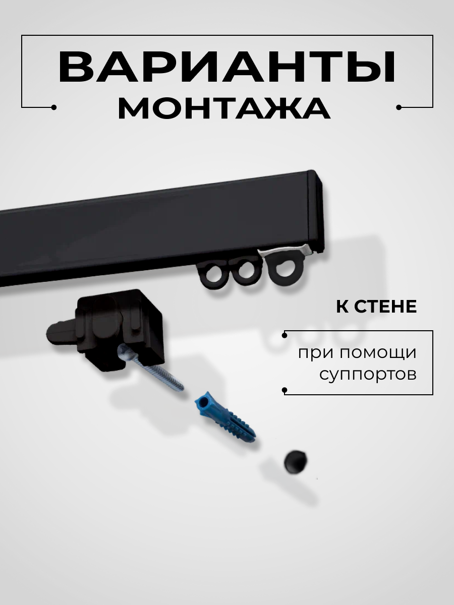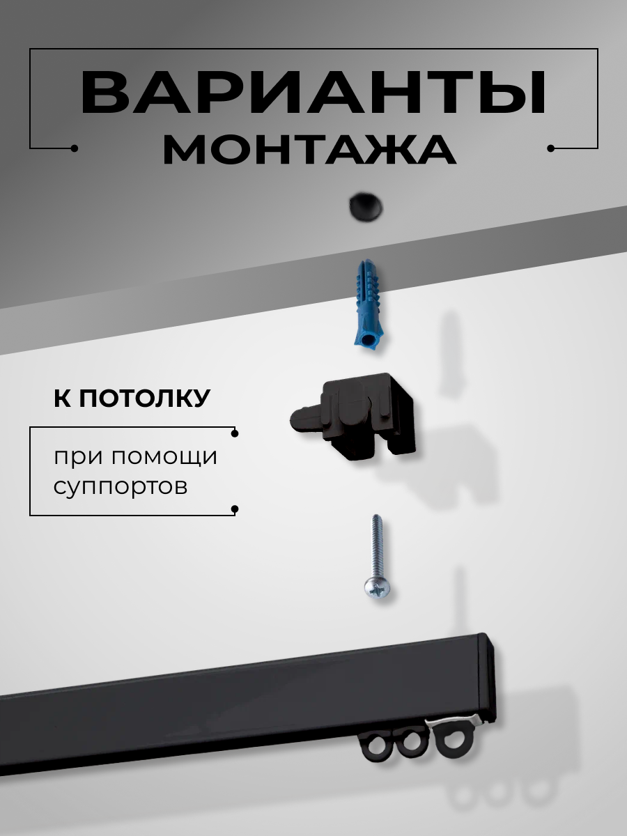 Карниз для штор на окно профильный однорядный, черный, 220 см.