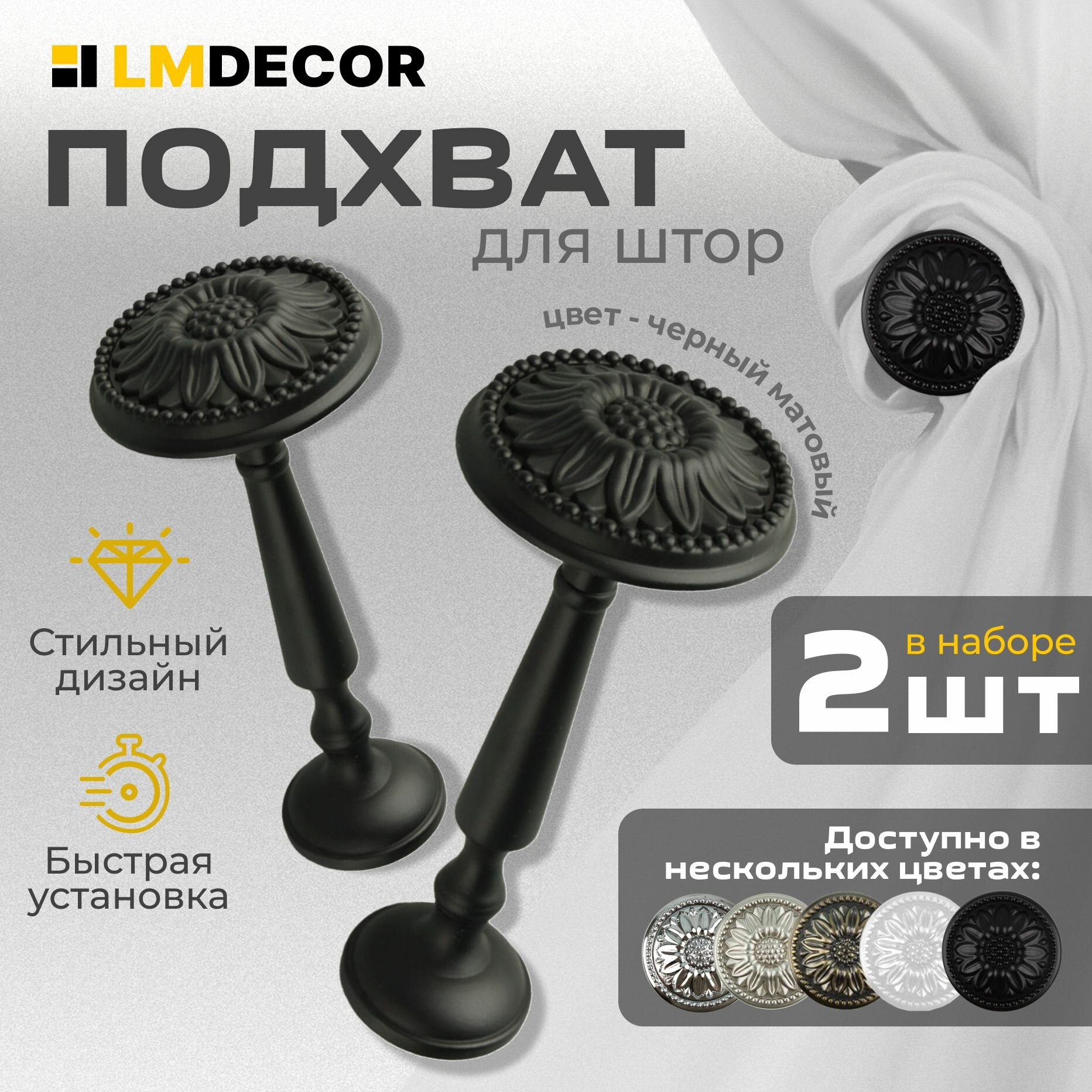 СохранитьПодхваты для штор "Розета" LMDECOR, черные, матовые, металл, длина 13см, ширина 5,5см, 2шт интересное: