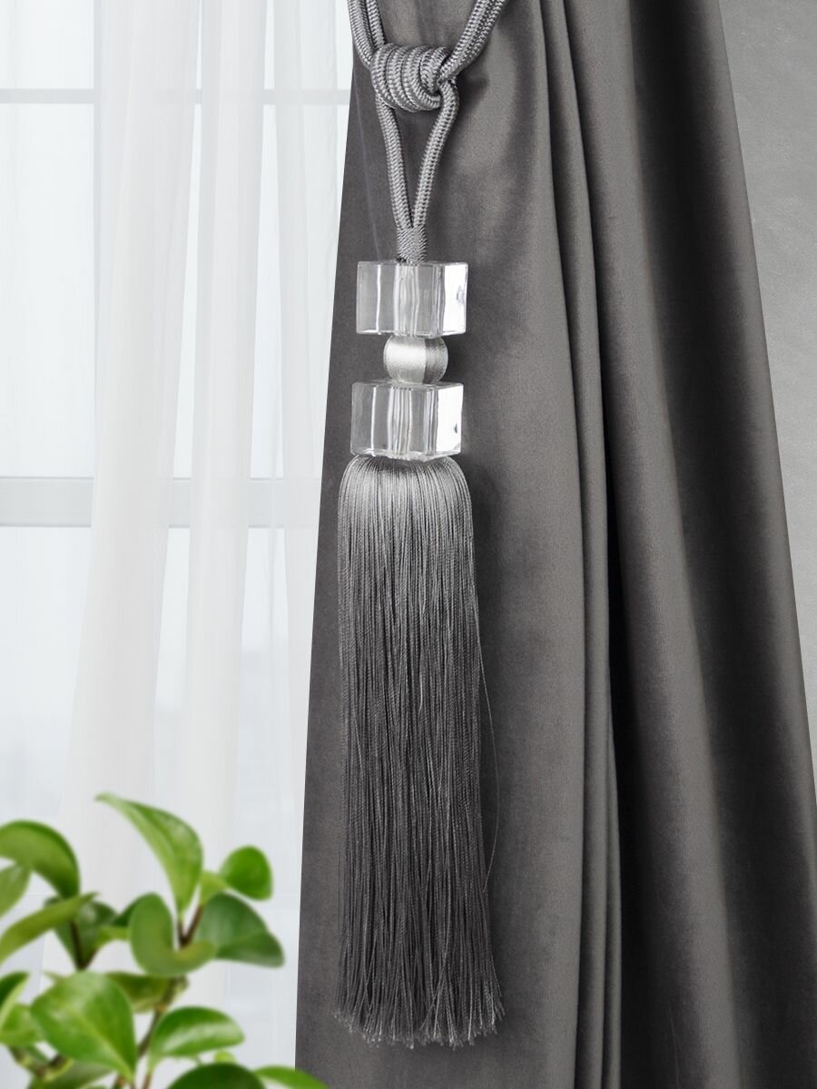 Кисть, завязка, подхват для штор 77 см Mirtex серый, прозрачный квдрат 1 шт. интересное: