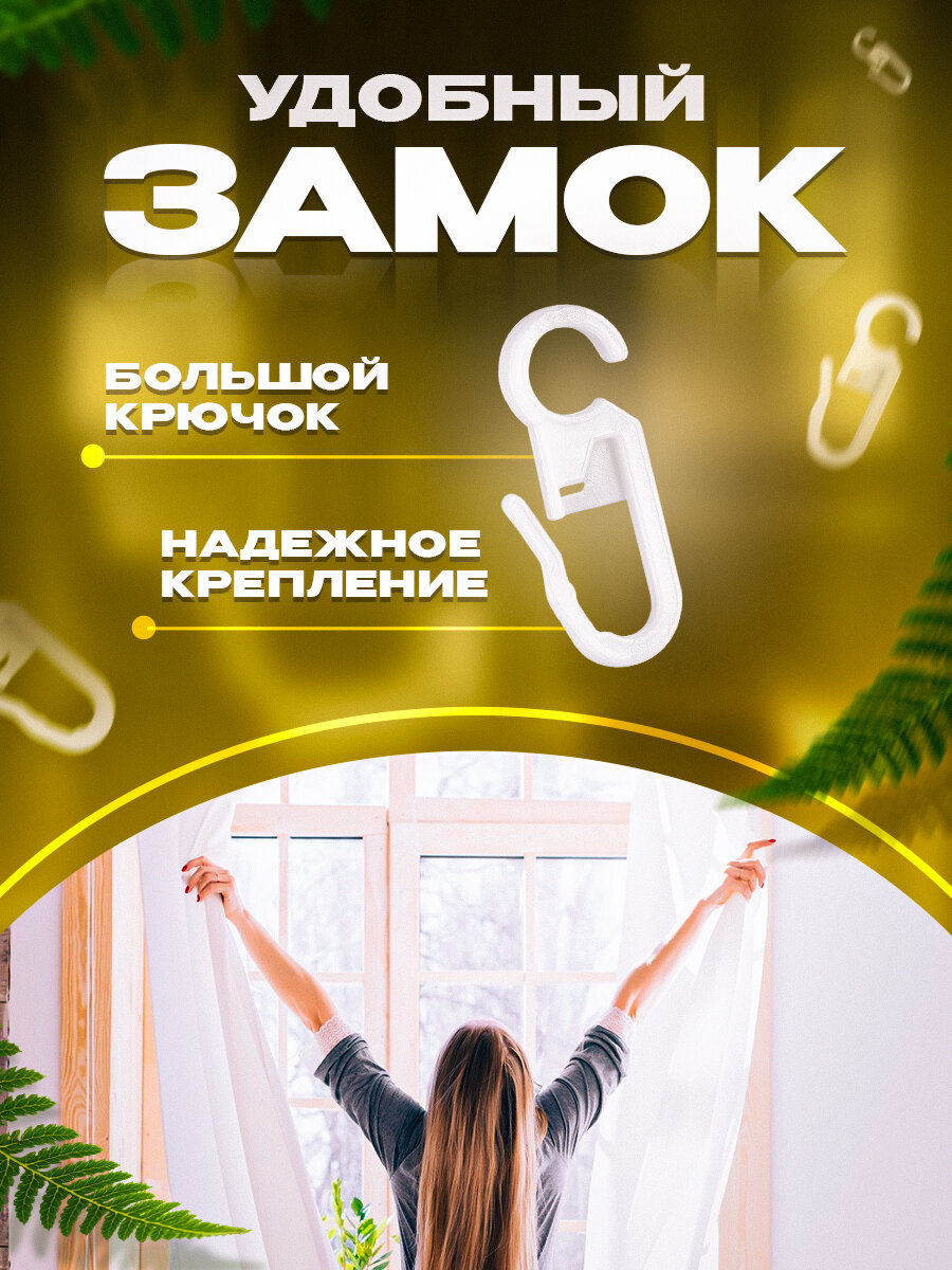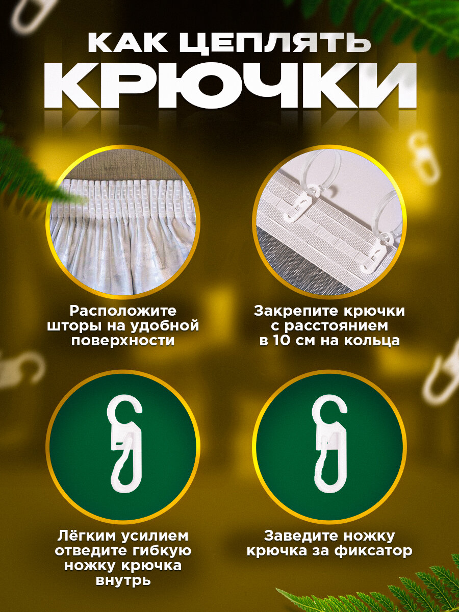 СохранитьКрючки для штор 100 шт. белые, кольца приобретаются отдельно, гелиосхит. интересное: