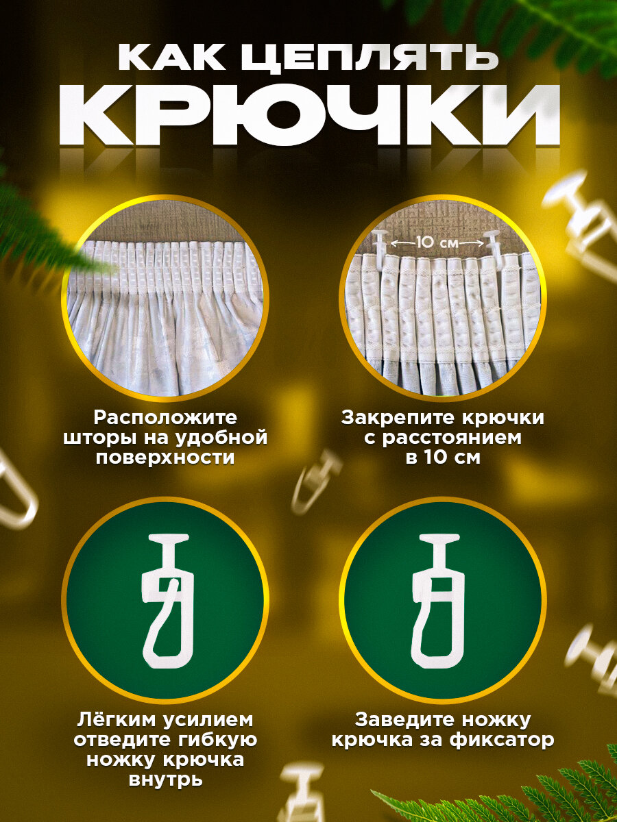 Крючки для штор 90 шт. белые, кольца приобретаются отдельно, гелиосхит.