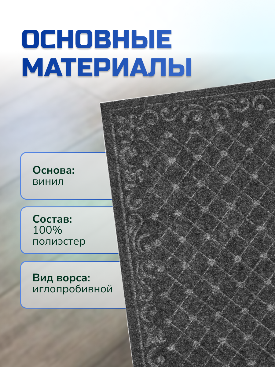 Коврик IN LORAN Холл 60х90см влаговпитывающий с тиснением серый ПВХ, синт. волокна