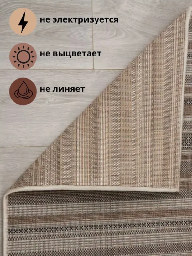СохранитьКовер безворсовый прямоугольный 52308 Beige 150х200см; в эко-стиле; современный плетеный ковер в столовую; 1.5 x 2 м; интересное: