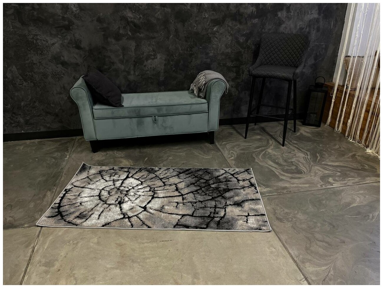 Безворсовый , противоскользящий коврик CarpetWorld "Мрамор" , полипропилен , микрофибра , прямоугольный , 100x60см.