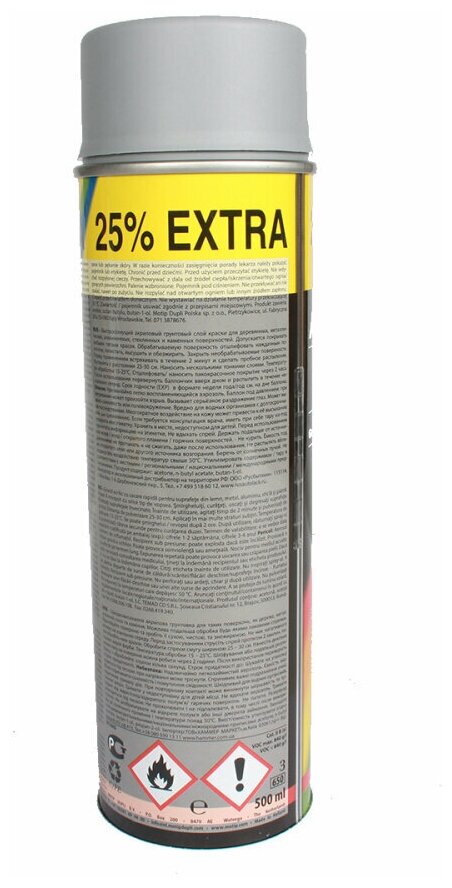 Быстросохнущий акриловый грунт MOTIP желтый. Аэрозольный баллон 0,5 л