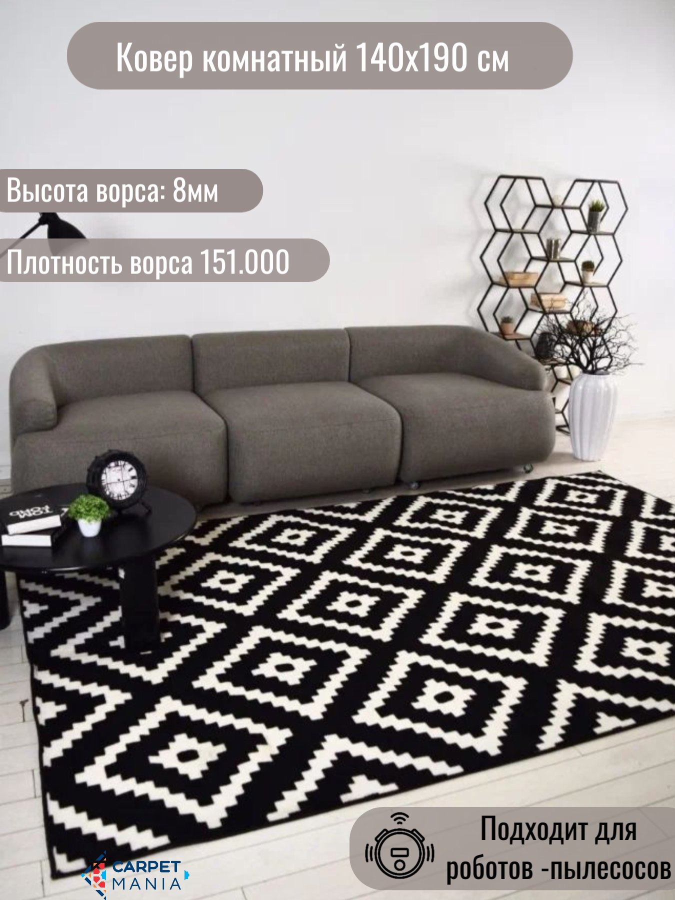 Ковер на пол прямоугольный 15769 Black-White 140х190 см; ковер для комнаты с ворсом 8 мм; палас для комнаты; коврик прикроватный; палас 1.4 на 1.9 ковролин