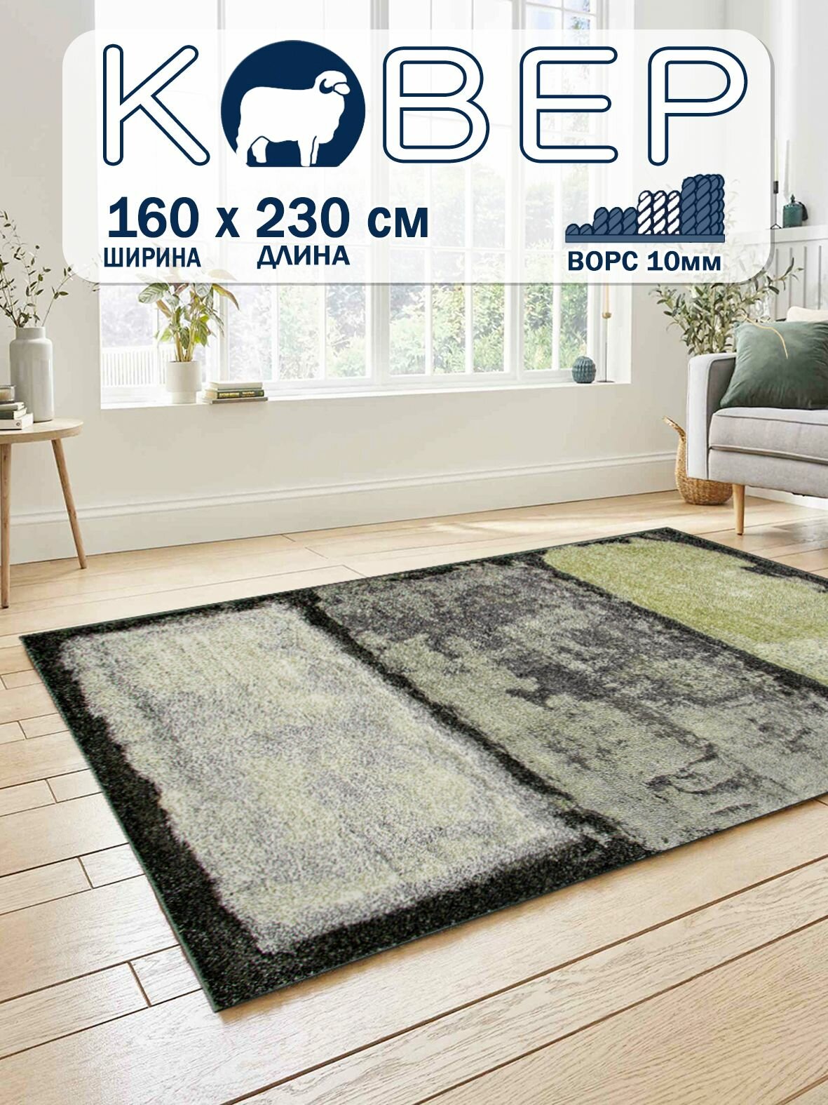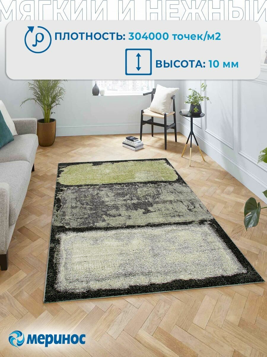 Ковер MERINO, 160x230см, зеленый, с ворсом, прямоугольный, абстрактный рисунок интересное:
