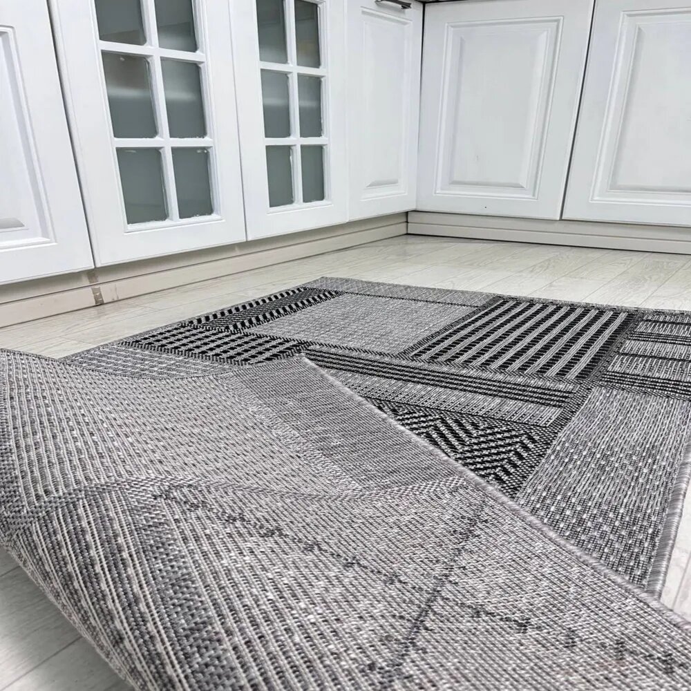Ковер безворсовый 52007_ 120 х 250см; в эко-стиле; современный плетеный ковер на пол в столовую; 1.2 x 2.5 м; в прихожую комнату, в коридор, в кухню