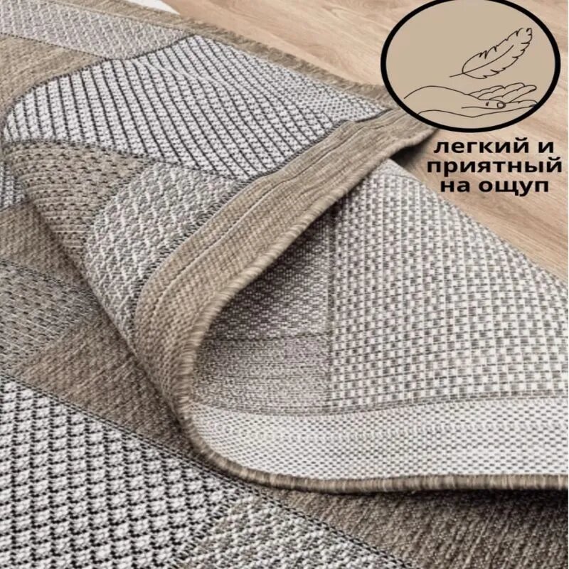 Ковер безворсовый 52007_ 120 х 250см; в эко-стиле; современный плетеный ковер на пол в столовую; 1.2 x 2.5 м; в прихожую комнату, в коридор, в кухню