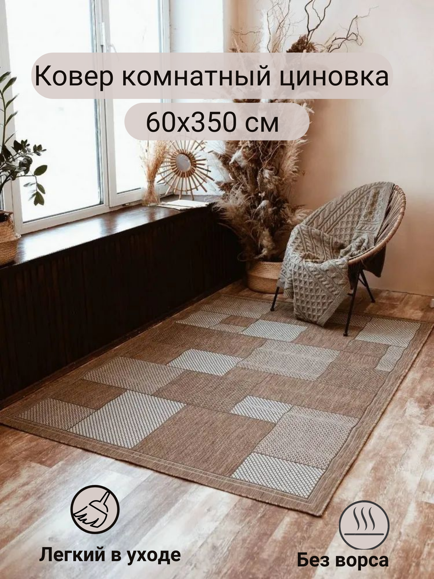 Купить Ковер CARPET_MANIA 52301, безворсовый, эко-стиль, 60x350 см, бежевый