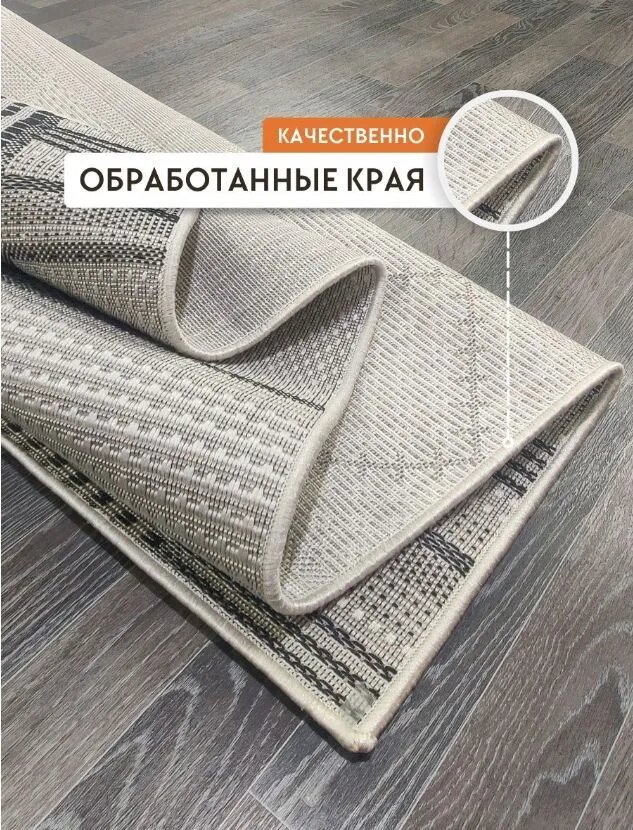 Ковер безворсовый 52007_ 120 х 300см; в эко-стиле; современный плетеный ковер на пол в столовую; 1.2 x 3 м; в прихожую комнату, в коридор, в кухню