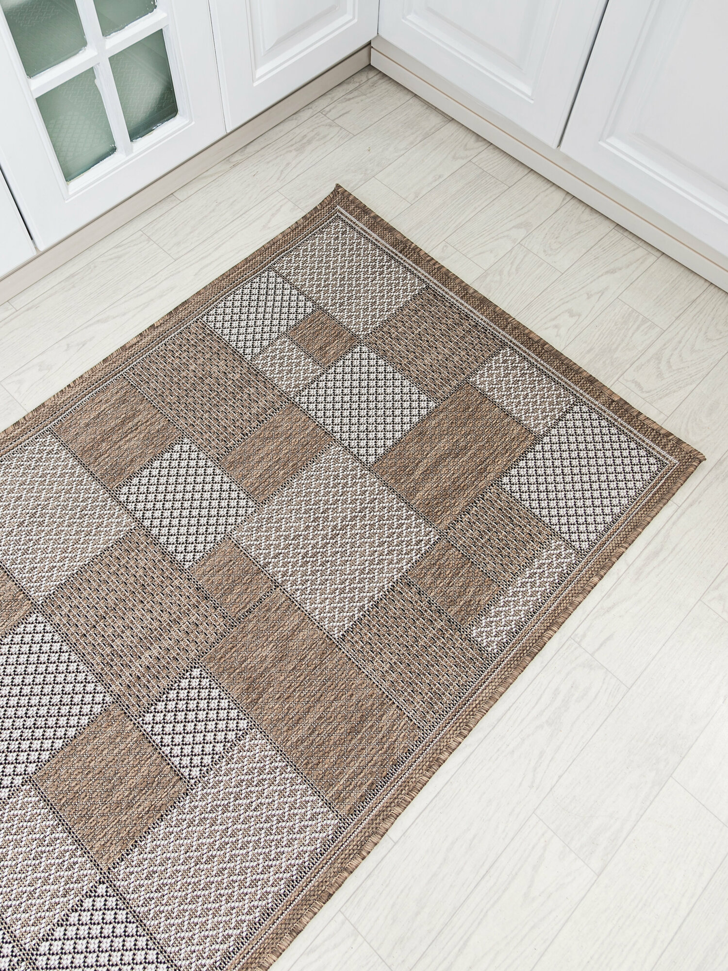 Ковер 52301 безворсовый 80 х 250см; в эко-стиле; современный плетеный ковер в столовую, в прихожую, в коридор, в кухню