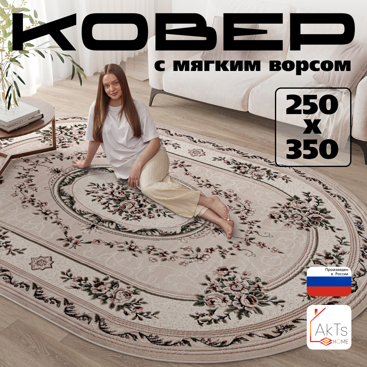 Купить Ковер на пол AkTs комнатный 250 на 350 овальный в гостиную, зал, спальню, кухню прихожую, кабинет, комнату