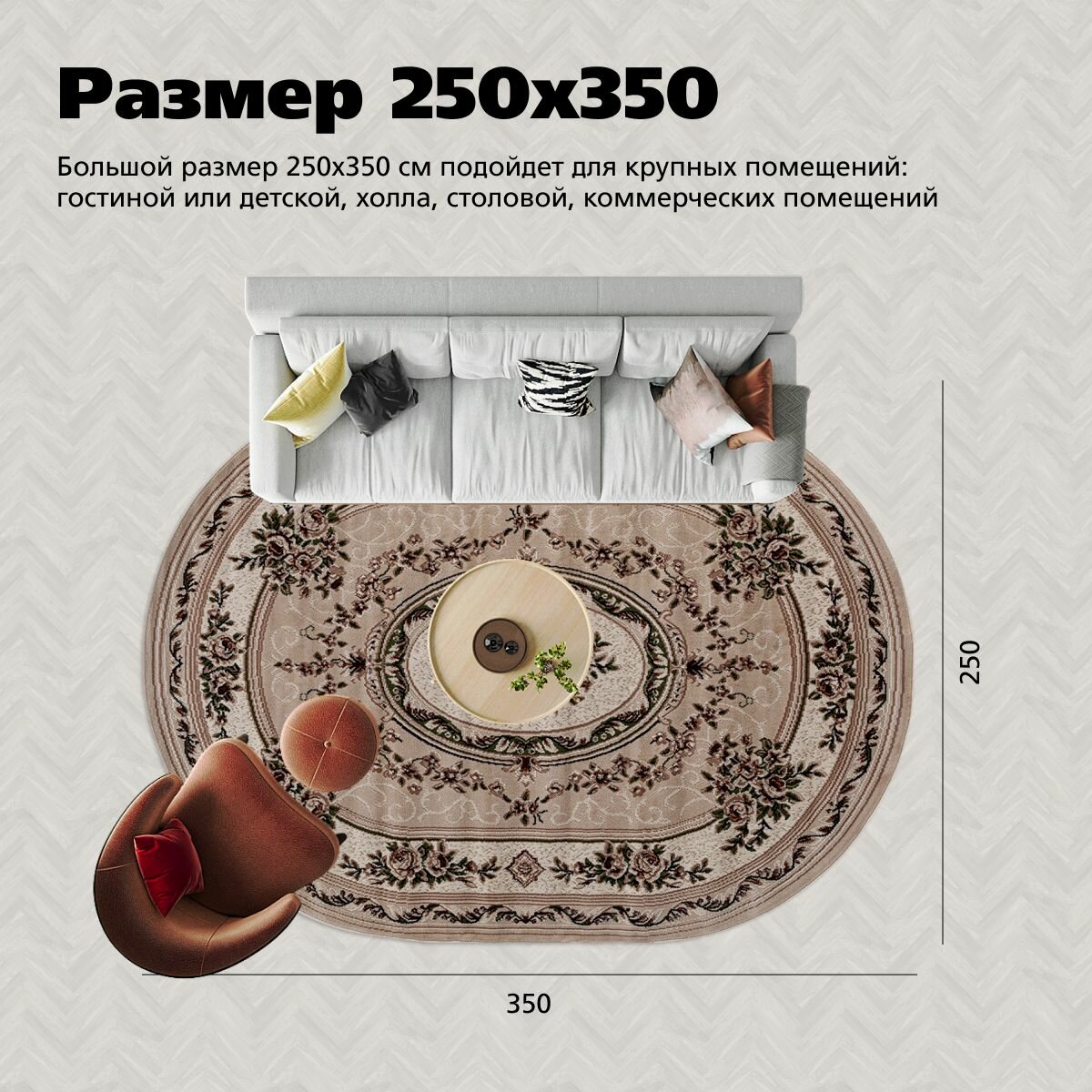 Ковер на пол AkTs комнатный 250 на 350 овальный в гостиную, зал, спальню, кухню прихожую, кабинет, комнату интересное: