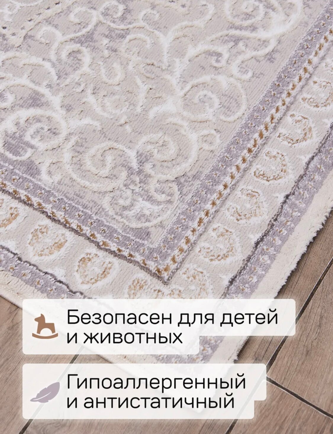Ковер комнатный Allures, на пол, 100х150 см, серый