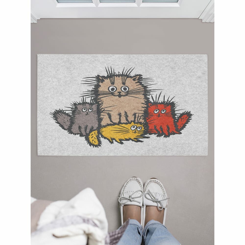 Купить Коврик придверный в прихожую с принтом "Озорные коты" 45 на 75 см , JoyArty