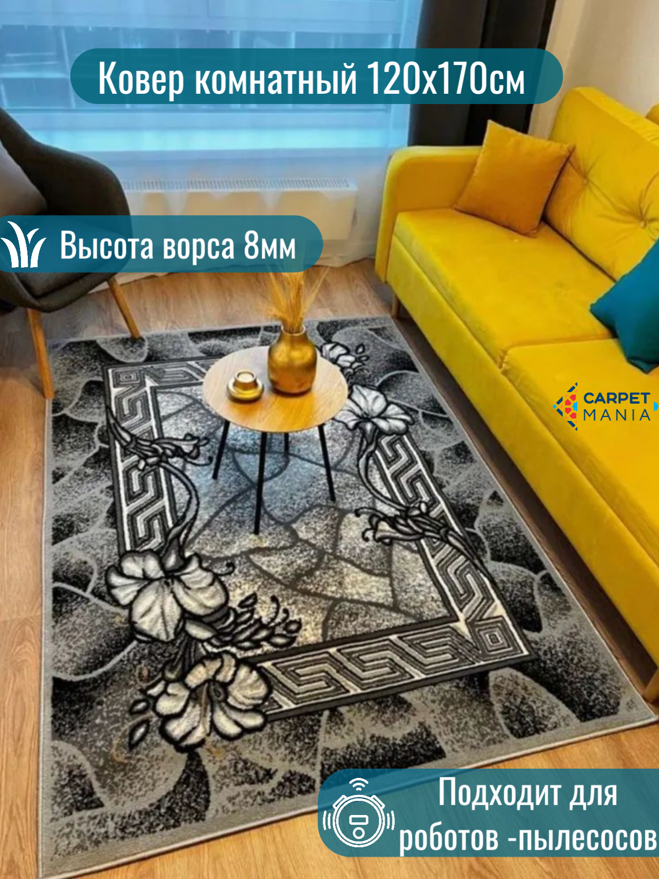 СохранитьКовер 15705 Gray 120 x 170 см, с ворсом, на пол, интерьерный, в прихожую, в детскую, в гостиную, прикроватный, в кухню интересное:
