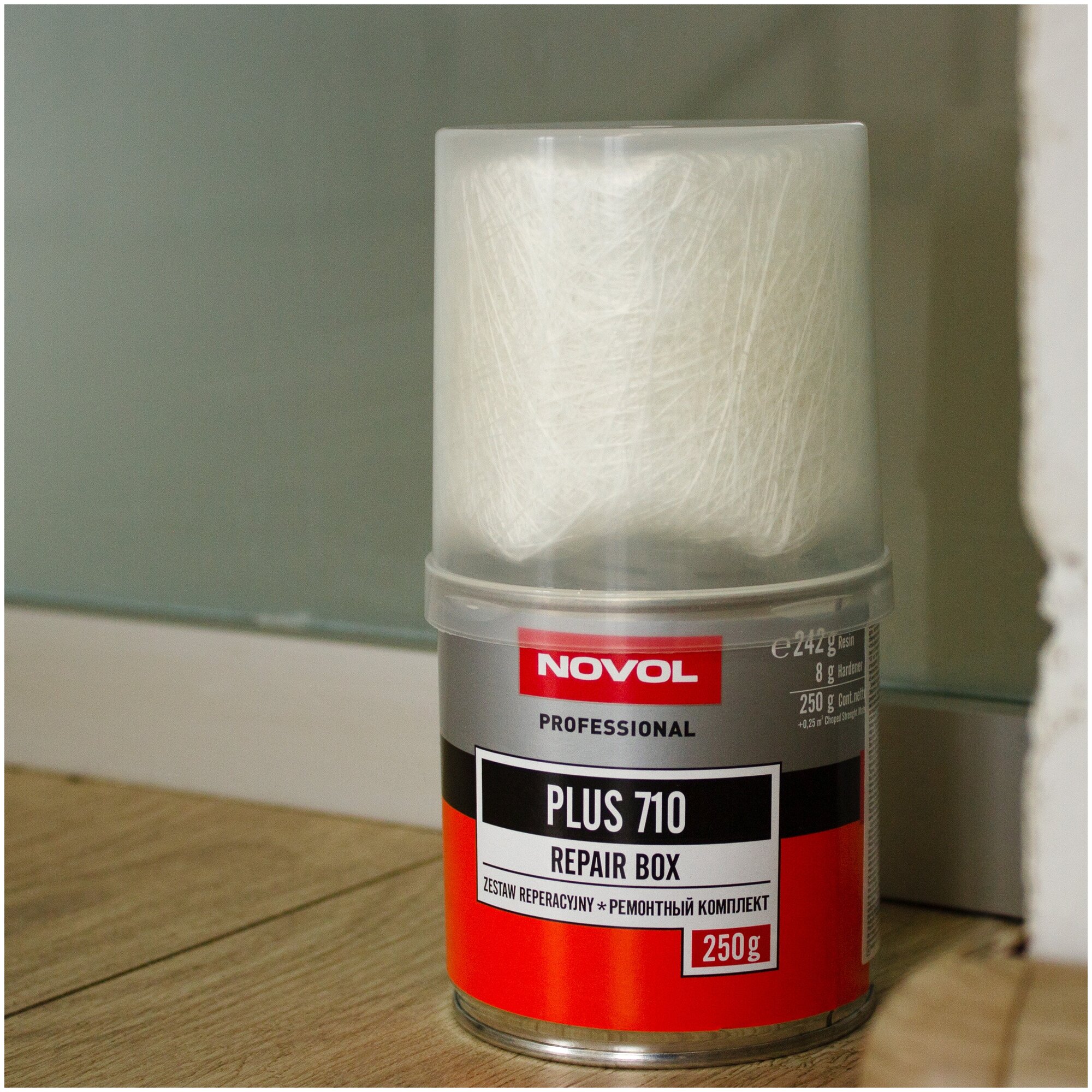 Полиэфирная смола для авто NOVOL PROFESSIONAL PLUS 710 250 г с отвердителем + стекловолокно для авто ремкомплект для пластика и сквозных дыр 36101