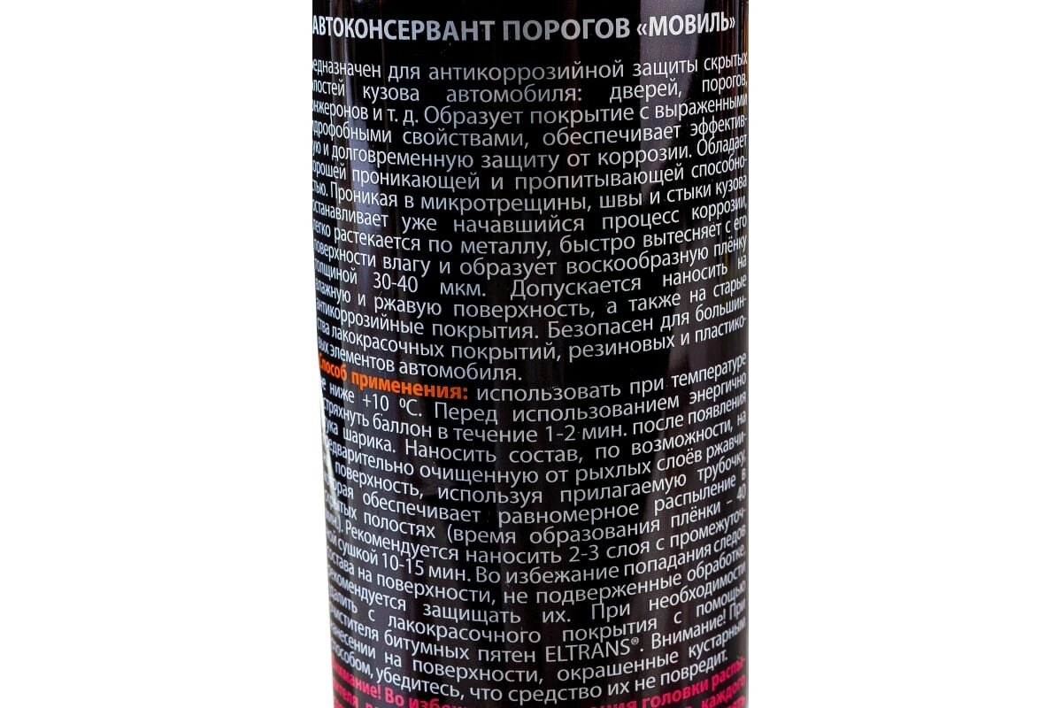 Антикоррозийное покрытие Мовиль элтранс автоконсервант порогов аэрозоль 400мл, EL020102 Элтранс-Н EL-0201.02