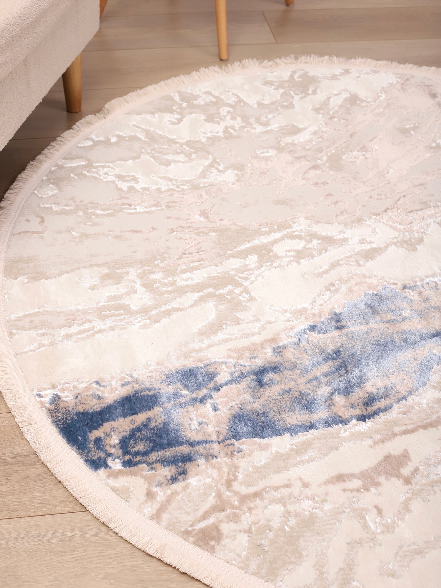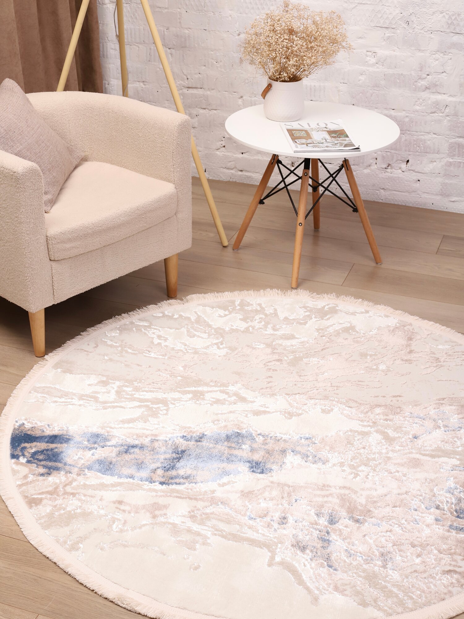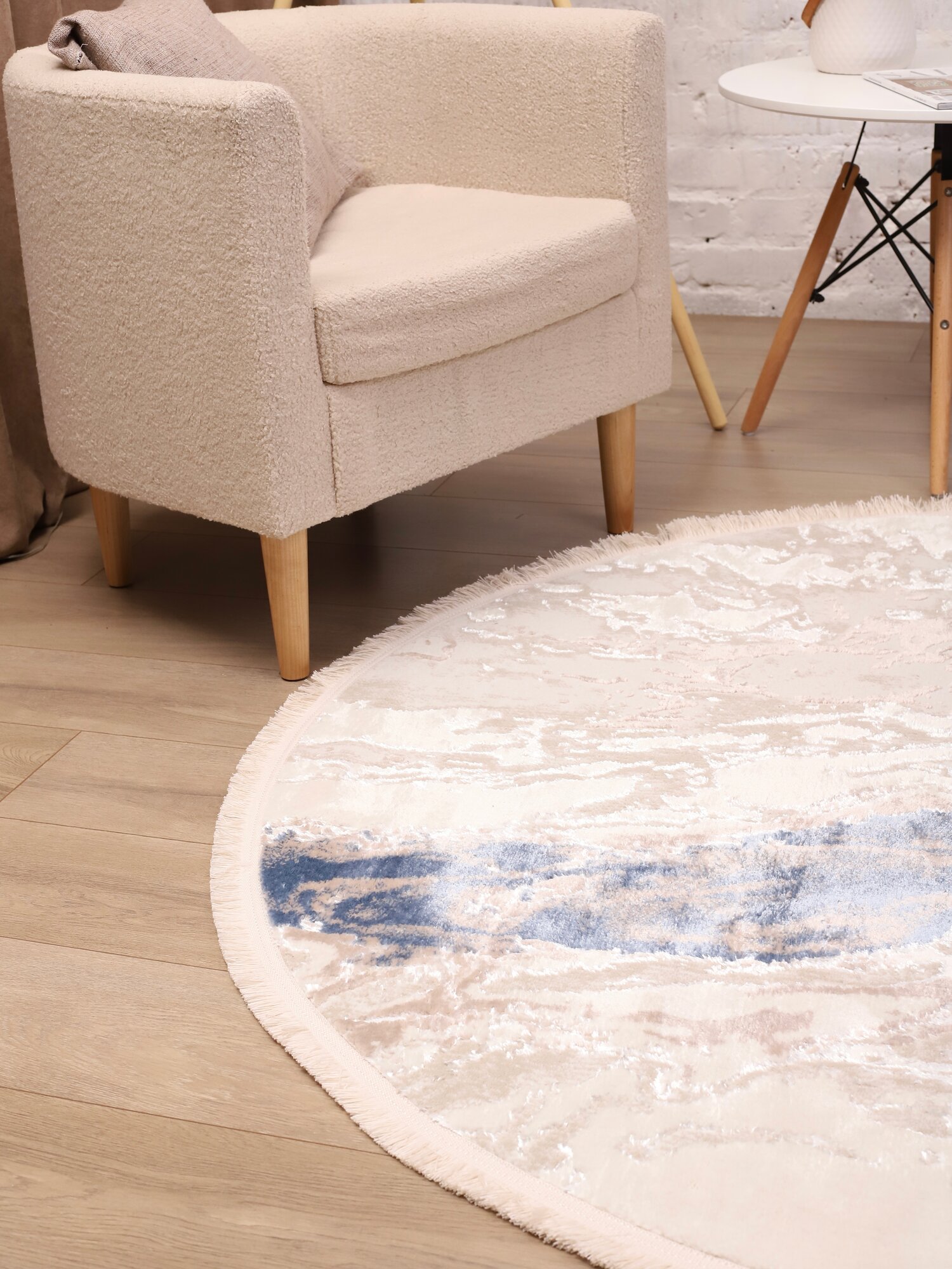 Ковер Турецкий комнатный круглый на пол 150 x 150 см, влагостойкий, из полиэстера и шерсть, для кухни, в детскую , гостиную, спальню, 1.5 х 1.5 м