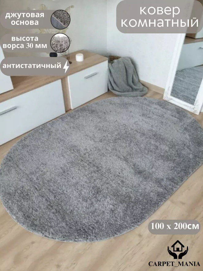 СохранитьКовер FUSION Shaggy серый однотонный с высоким длинным ворсом на пол овал с длинным ворсом 44102 Light-Gray 100х200см интересное: