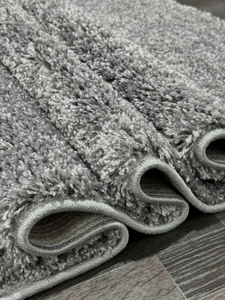 Ковер серый однотонный с высоким длинным ворсом на пол прямоугольный с длинным ворсом 44102 Light-Gray 100х200см