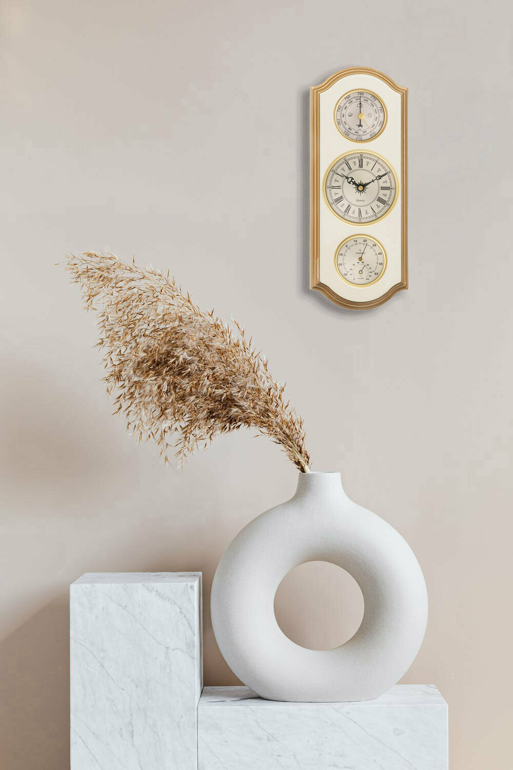 Метеостанция Бриг КМ93005-ЧБ(ТГ)-В, настенные часы в дереве, барометр, термометр, гигрометр, настенное крепление.