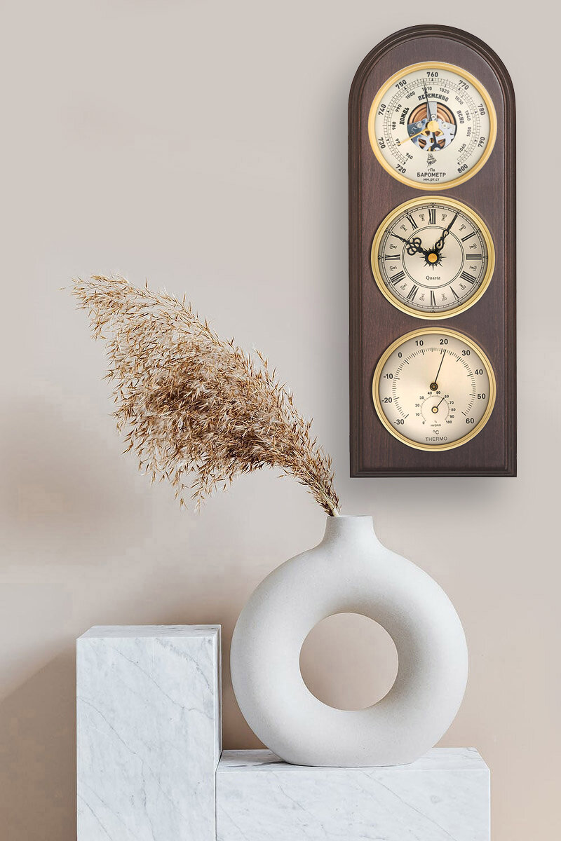 Метеостанция натуральное дерево настенная КМ93010-ЧБ(ТГ)-В часы барометр термометр гигрометр интересное: