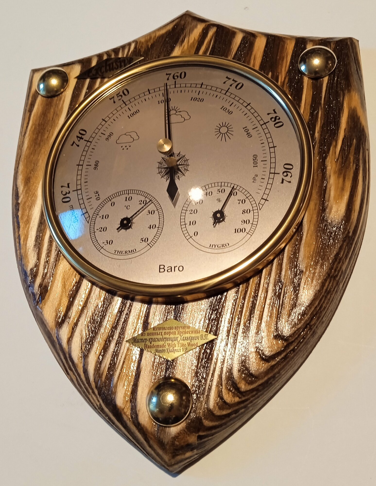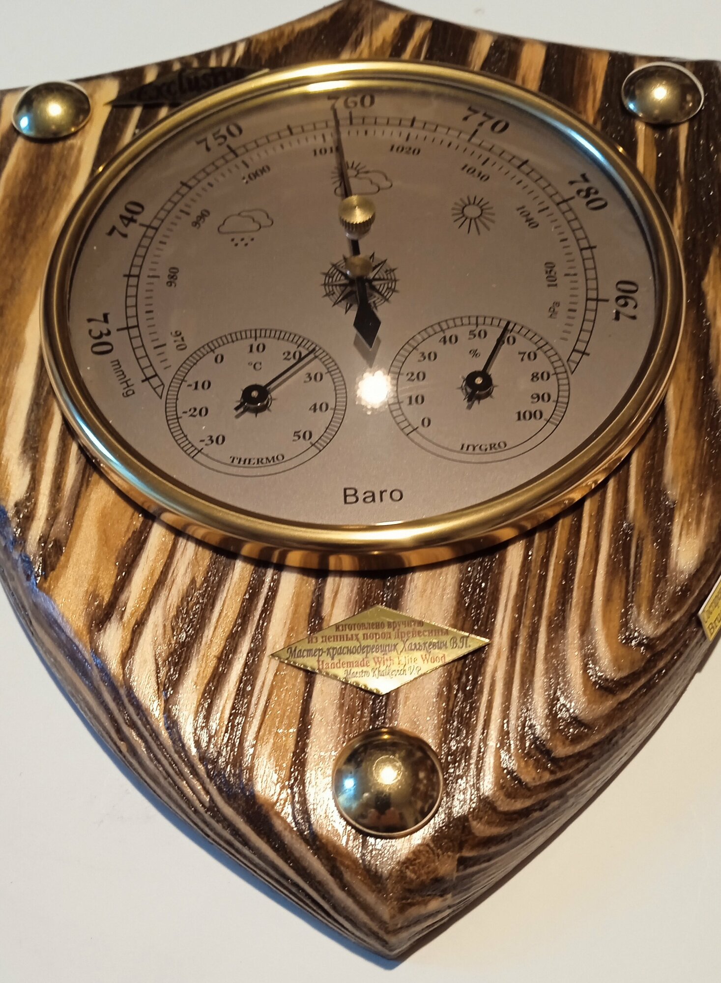 Щит с механической метеостанцией ТНВ 9392 (золото) тëмный, глянцевый. интересное: