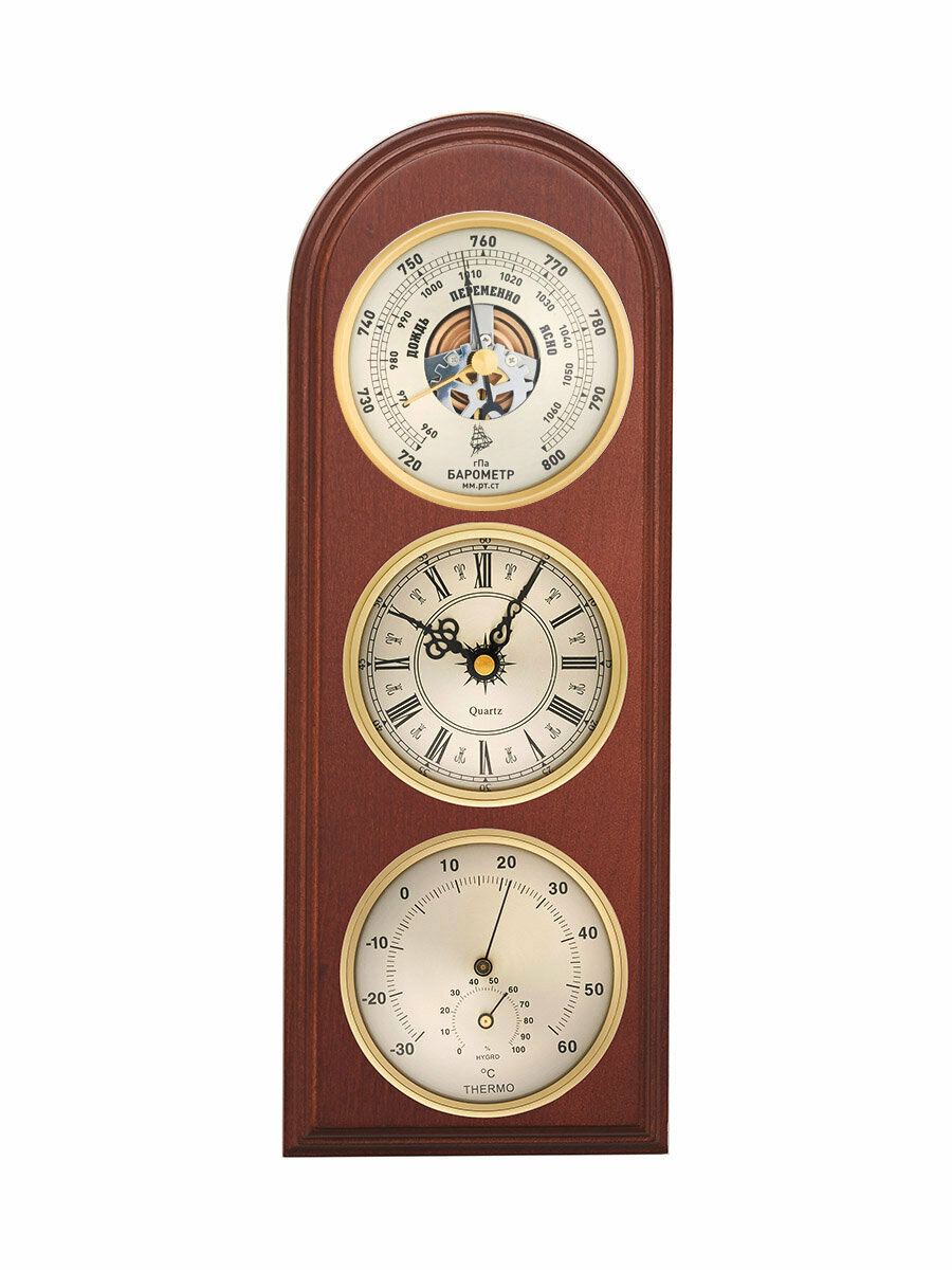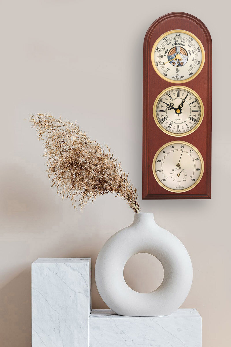 Метеостанция натуральное дерево настенная Бриг КМ93010-ЧБ(ТГ)-М часы барометр термометр гигрометр интересное: