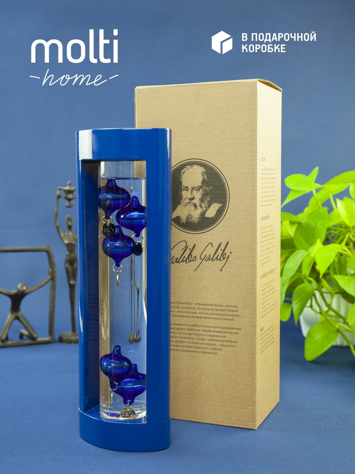 Термометр комнатный Галилео в деревянном корпусе, синий интересное: