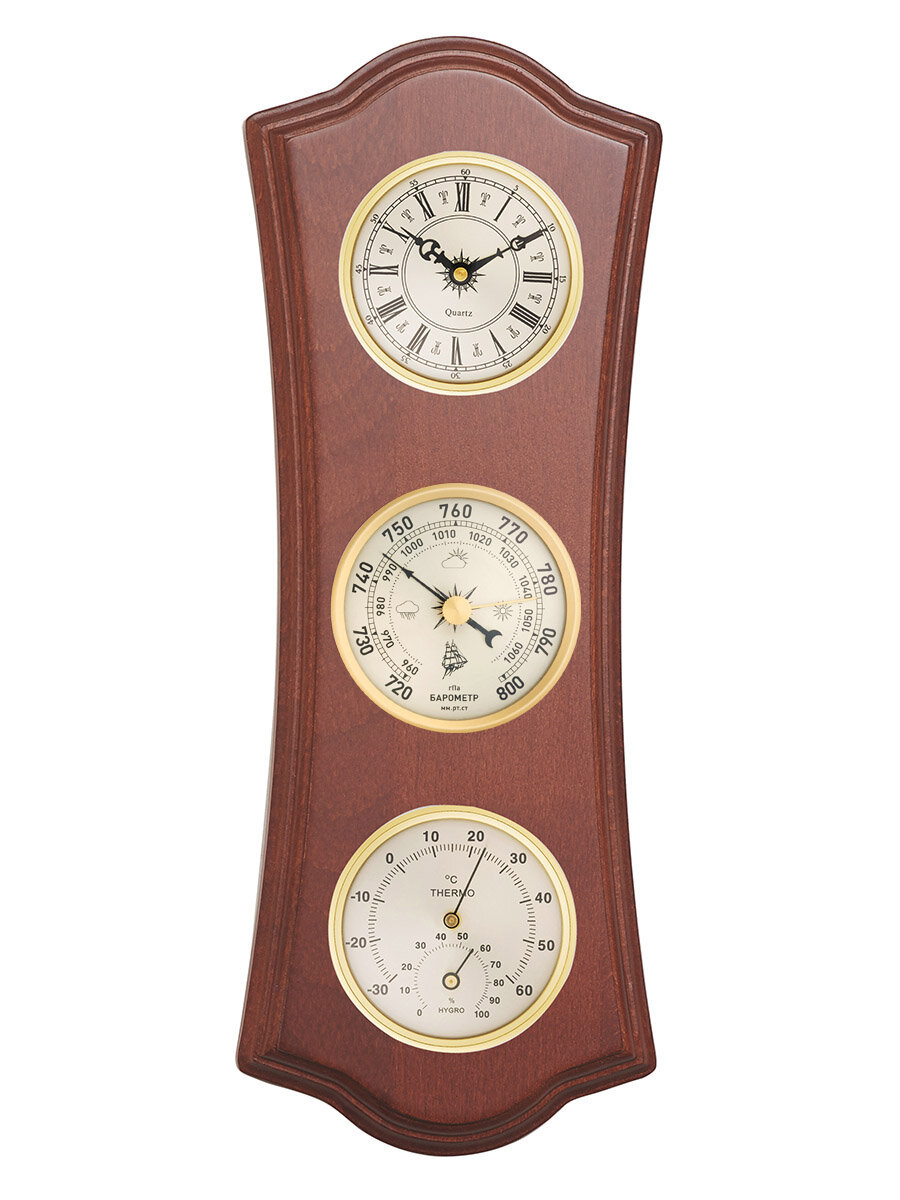 Метеостанция с часами Бриг КМ93001-1-ЧБ(ТГ)-М Барометр, термометр, гигрометр, настенная интересное: