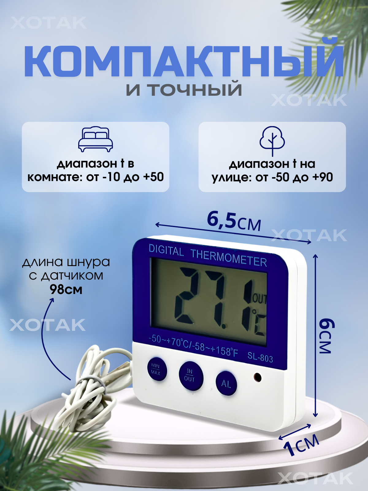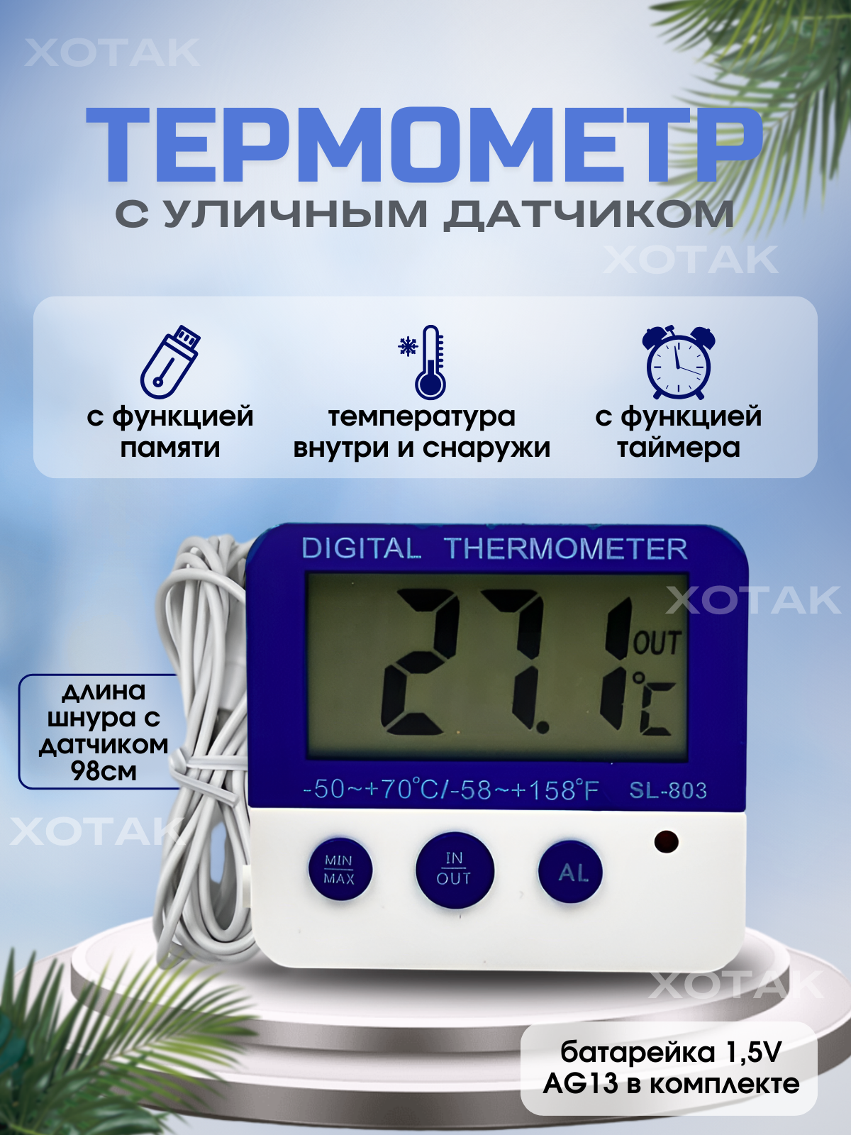 Купить Термометр уличный и комнатный с датчиком ; с таймером