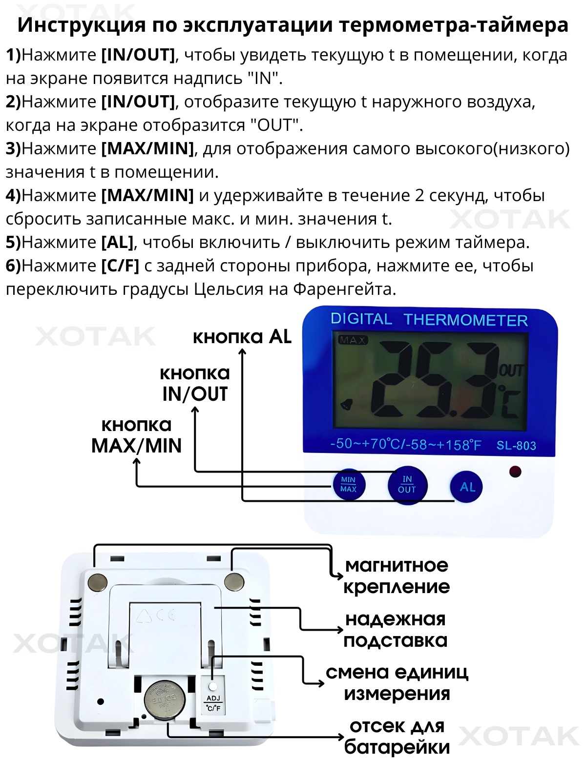 Термометр уличный и комнатный с датчиком ; с таймером интересное: