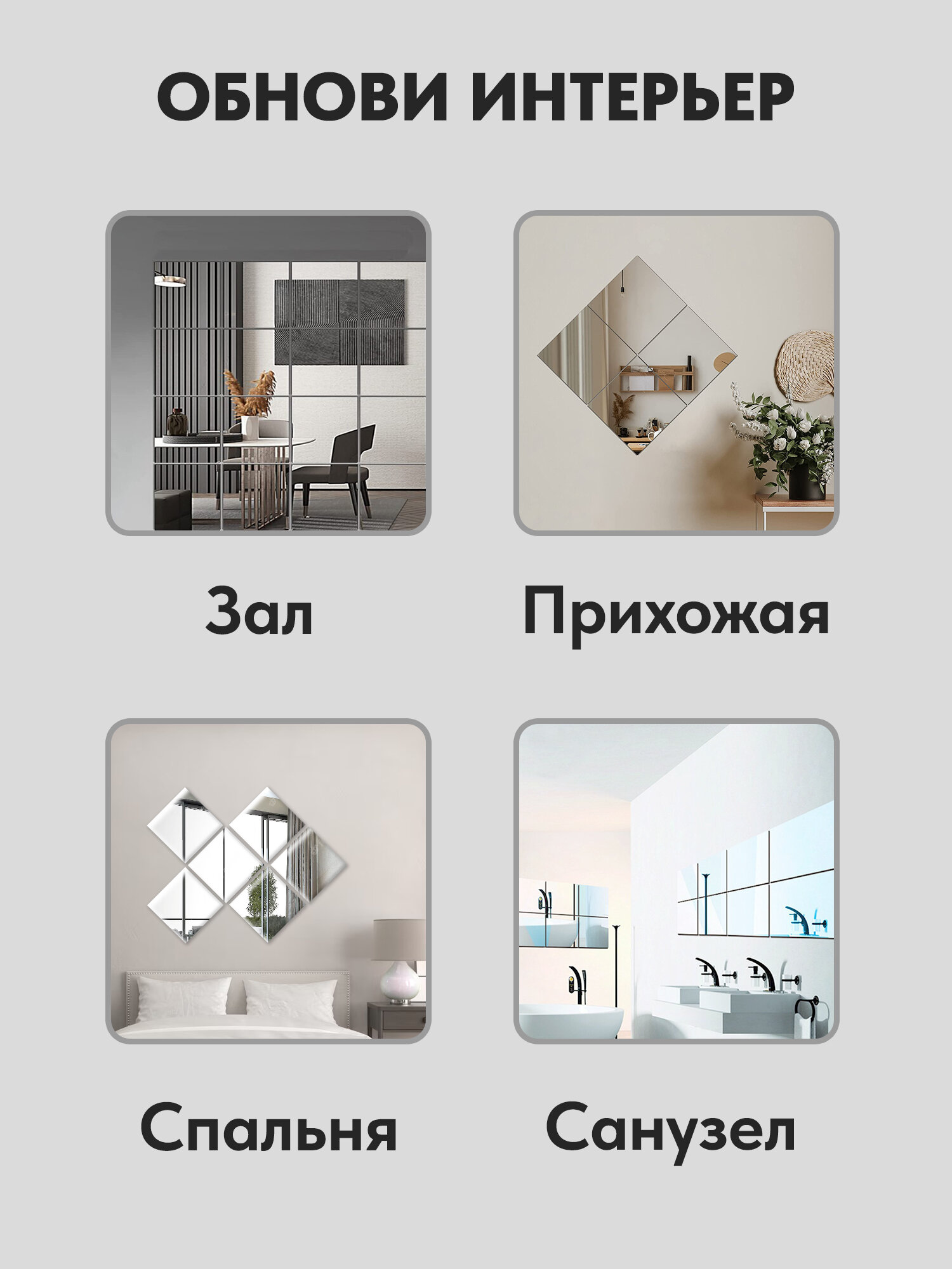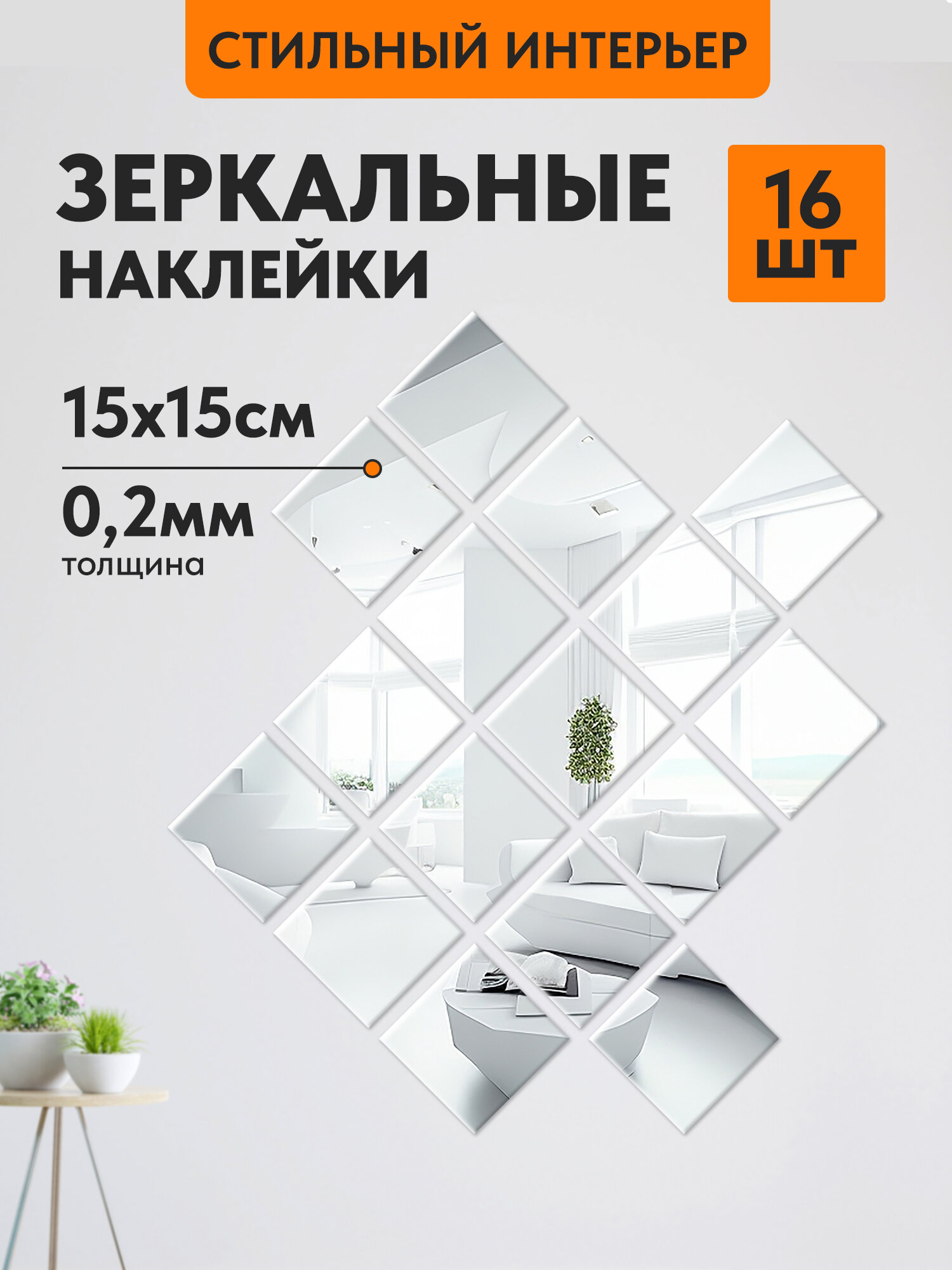 Наклейки "Зеркальные квадраты", 15x15 см, 16шт, влагостойкие интересное: