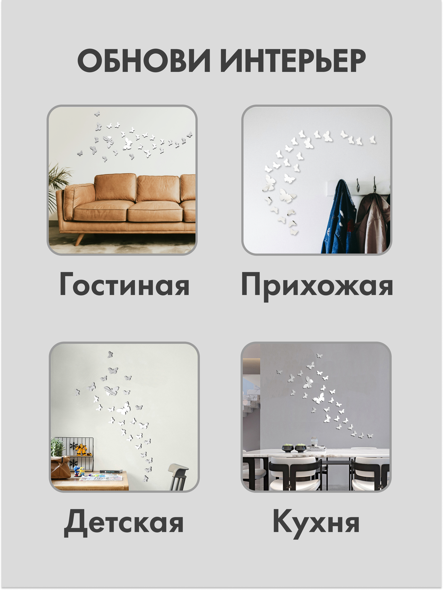 Наклейки Имидж Дом "Зеркальные Бабочки", для стен, влагостойкие, зеркальные, 25шт интересное: