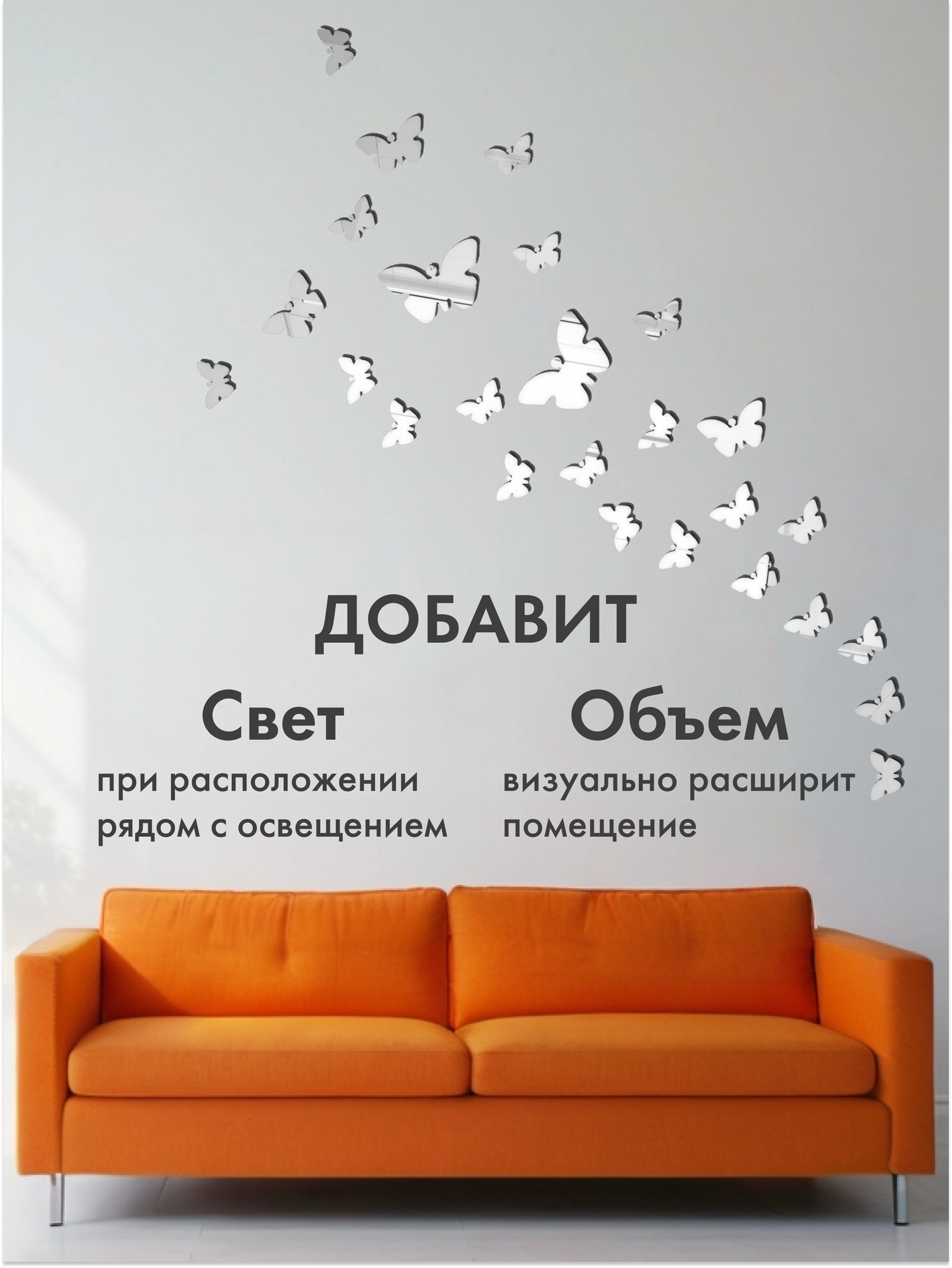 Купить Наклейки Имидж Дом "Зеркальные Бабочки", для стен, влагостойкие, зеркальные, 25шт