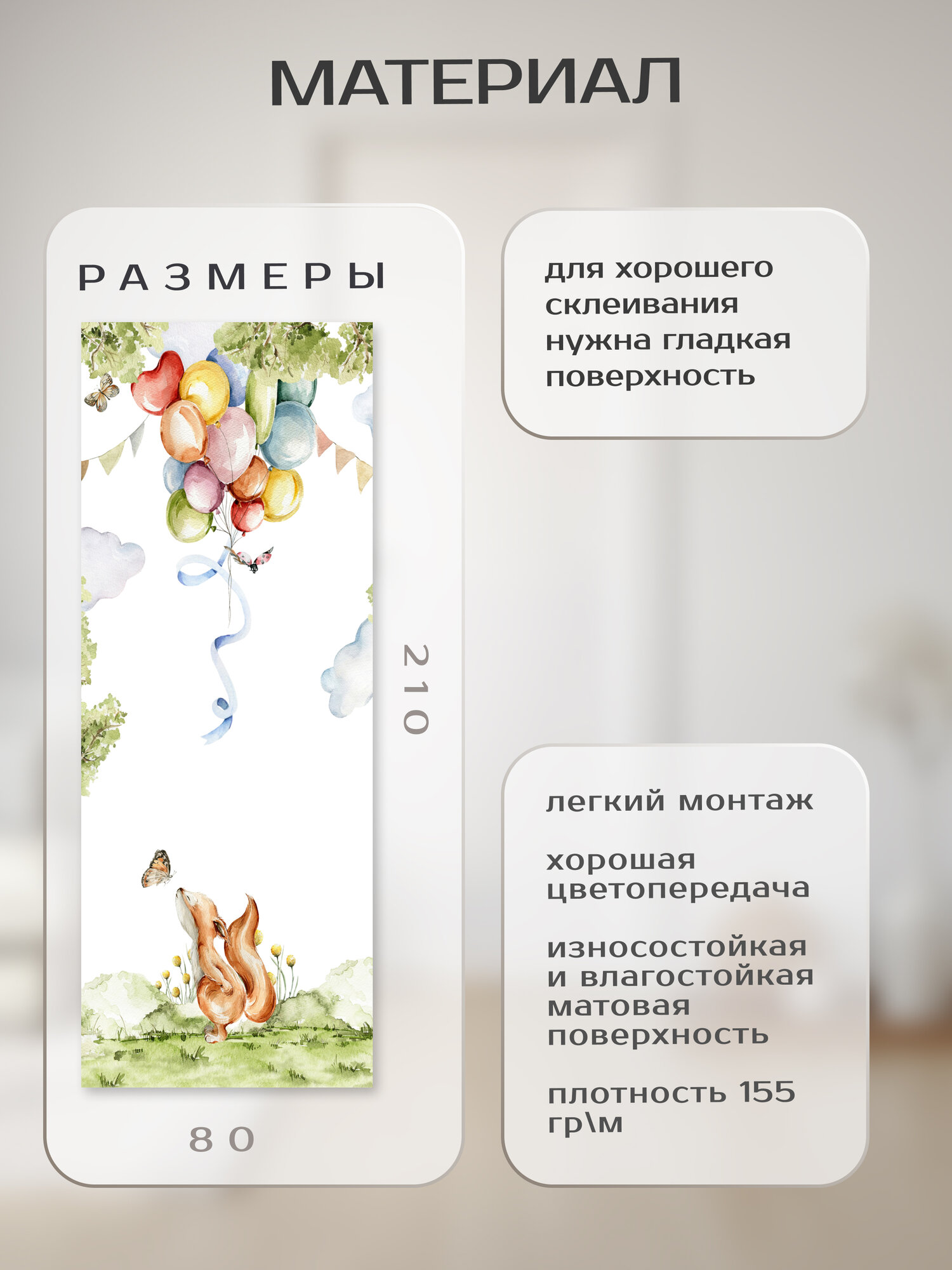 Ниже Вы можете прочитать отзывы на Плотная виниловая самоклеящаяся интерьерная наклейка на дверь "Лисичка и шары" 80х210 см, самоклейка на шкаф, мебель, ознакомится с подробными характеристиками, посмотреть интересные обзоры и фотографии на Плотная виниловая самоклеящаяся интерьерная наклейка на дверь "Лисичка и шары" 80х210 см, самоклейка на шкаф, мебель.