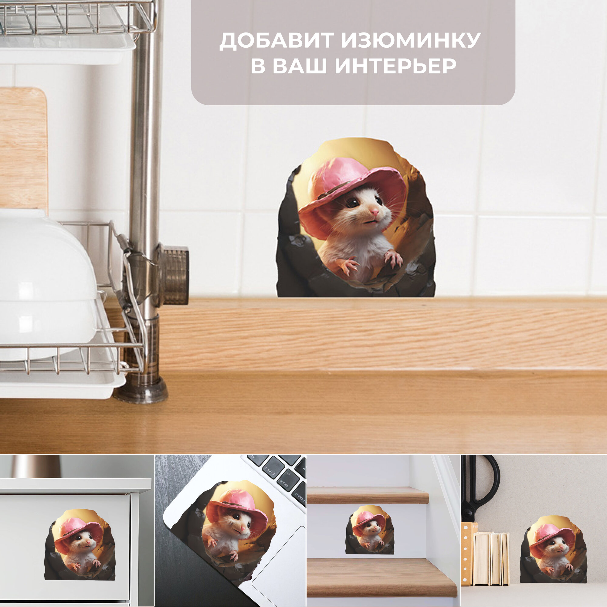 Забавная наклейка для декора интерьера и для розыгрыша Мышка в розовой шляпке интересное: