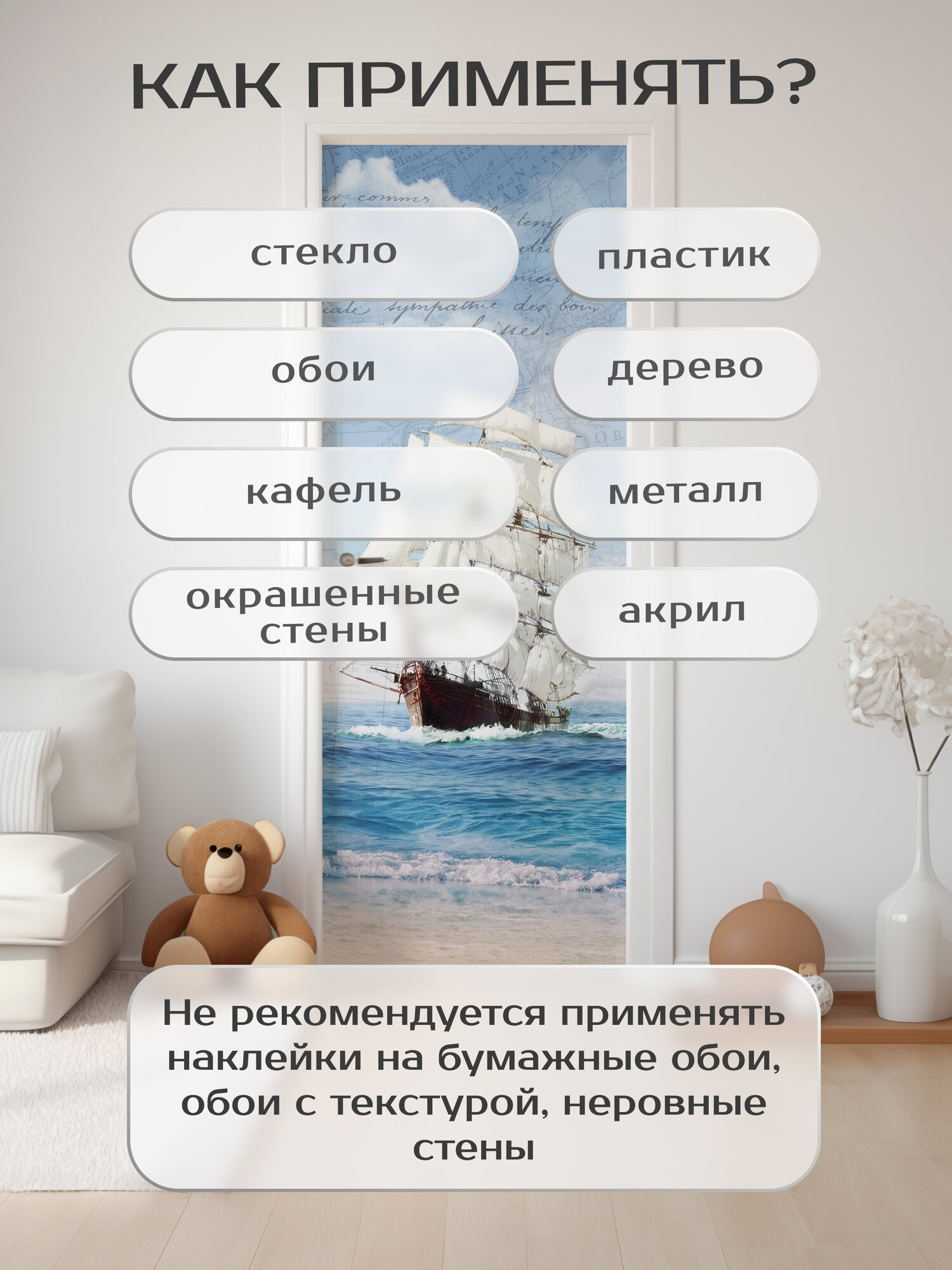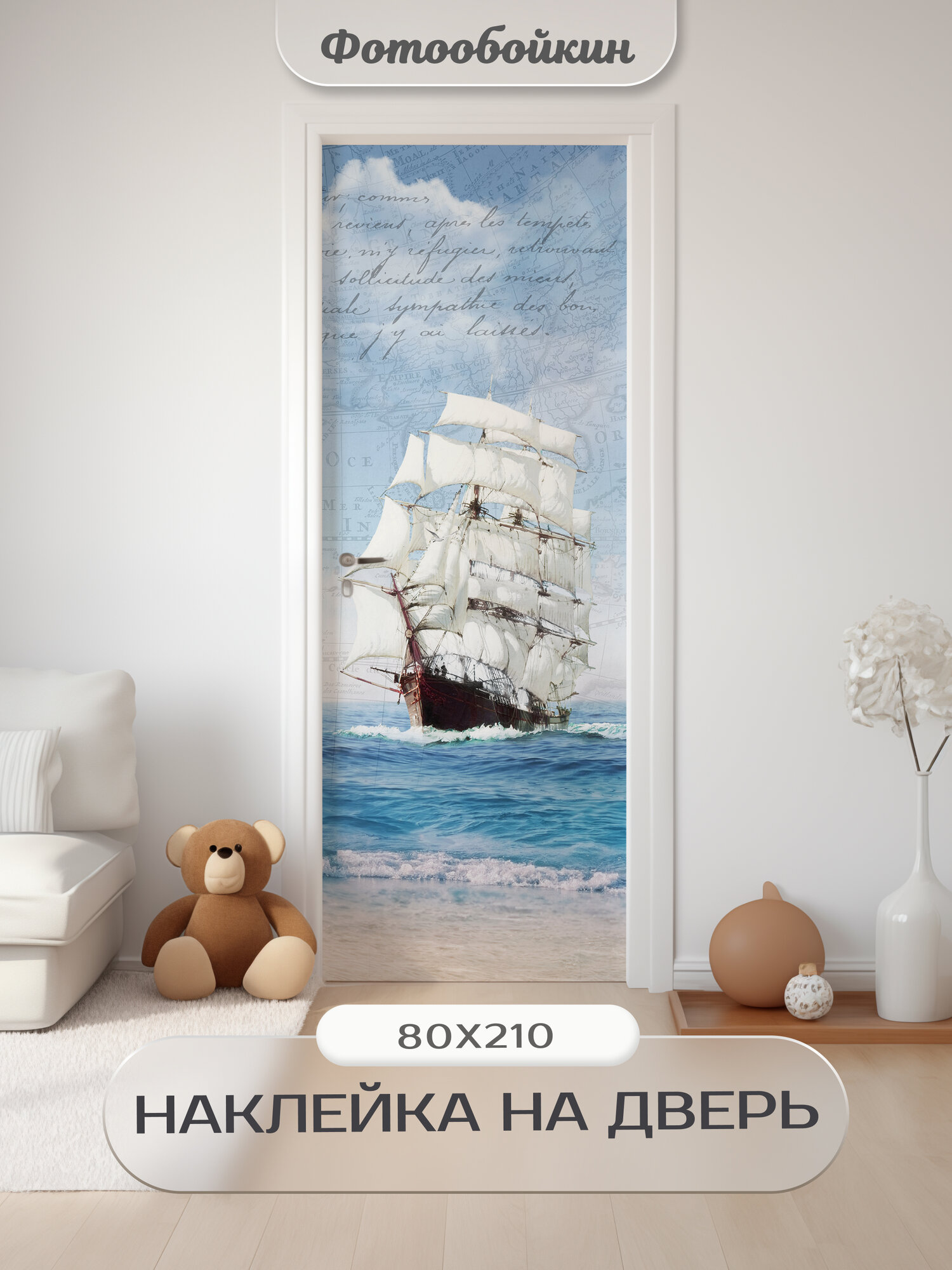 Купить Плотная виниловая самоклеящаяся интерьерная наклейка на дверь "Корабль" 80х210 см, самоклейка на шкаф, мебель