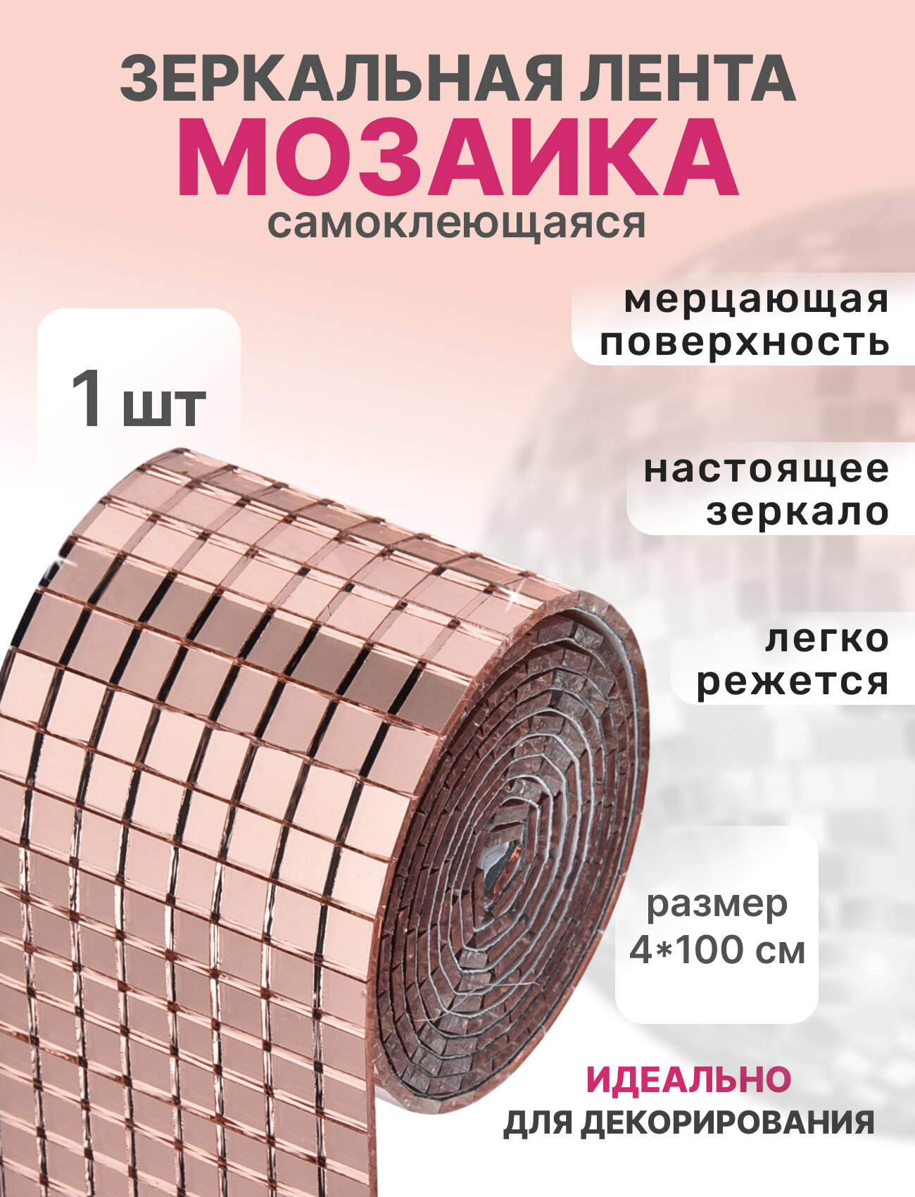 Наклейка "Зеркальная мозаика", влагостойкая, розовое золото, 4х100 см интересное: