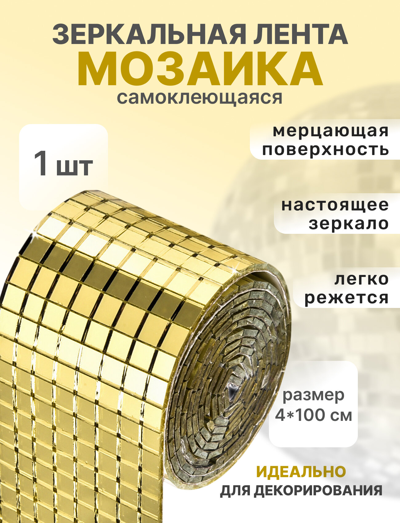 Наклейка Имидж Дом "Мозаика", зеркальная, золотая, 100x4 см интересное: