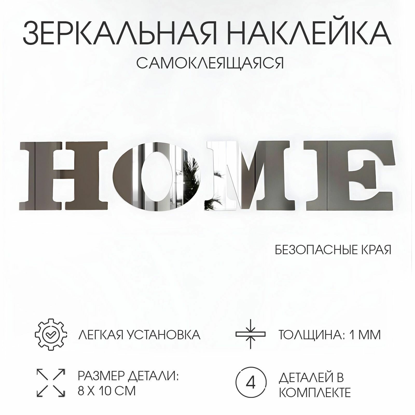 Купить Наклейки интерьерные "HOME", зеркальные, декор на стену, буква 8 х 10 см