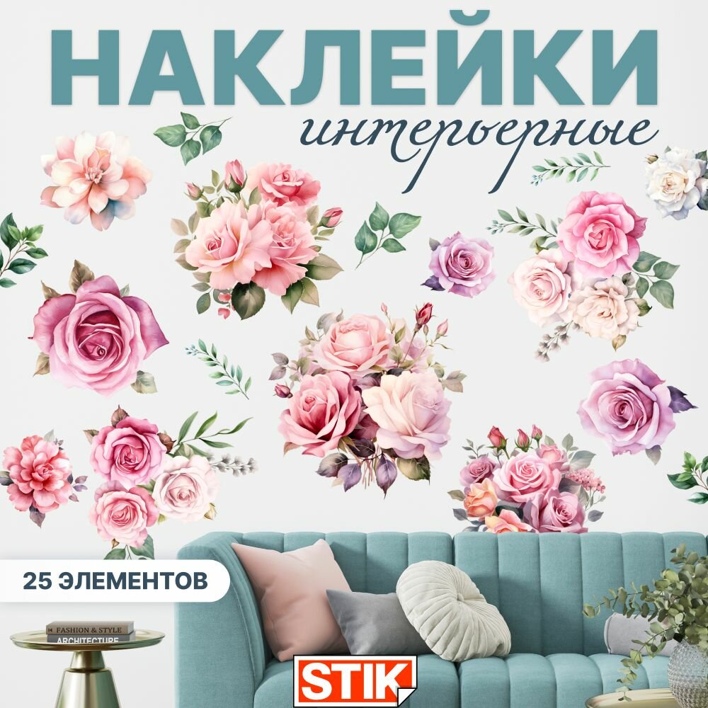 Интерьерная наклейка "Цветы" Stik, декор на стену для комнаты и кухни, виниловая дизайнерская пленка для украшения дома и мебели . интересное: