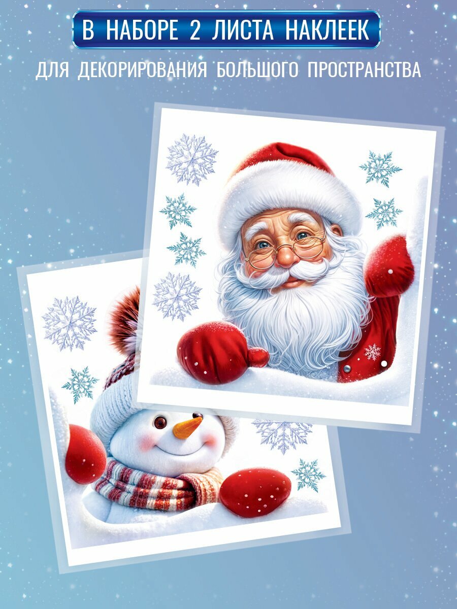 Купить Новогодние наклейки с двухсторонней цветной печатью на окна "Дед Мороз и снеговик в окне"