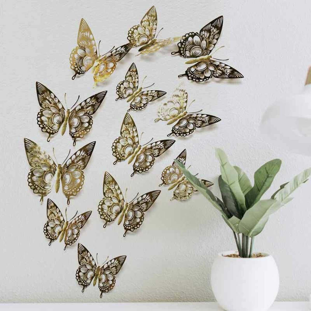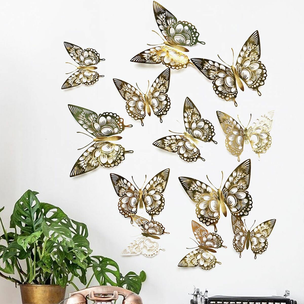 Купить 12шт - Бабочки объемные виниловые декоративные (Золотые) на магните + клейкой ленте