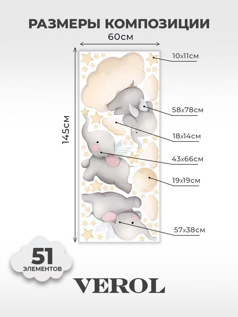 Наклейки интерьерные VEROL "Слоники" на стену, декор для дома, стикеры самоклеящиеся, украшения для комнаты, подарок интересное: